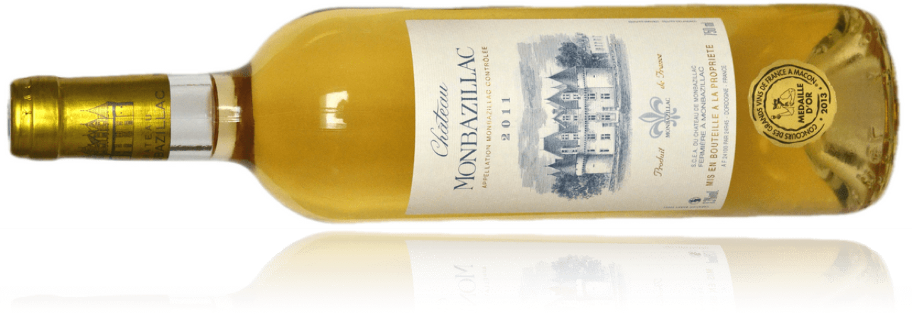 Weicher likörartiger Monbazillac aus drei Rebsorten. Die Sémillonrebe wird wegen der Edelfäule (Boytritis cinera) benötigt. Die Sauvignonrebe ergibt Frische und Spannkraft. Die Muscadellerebe ergibt das runde, geschmackvolle Aroma des Weins.