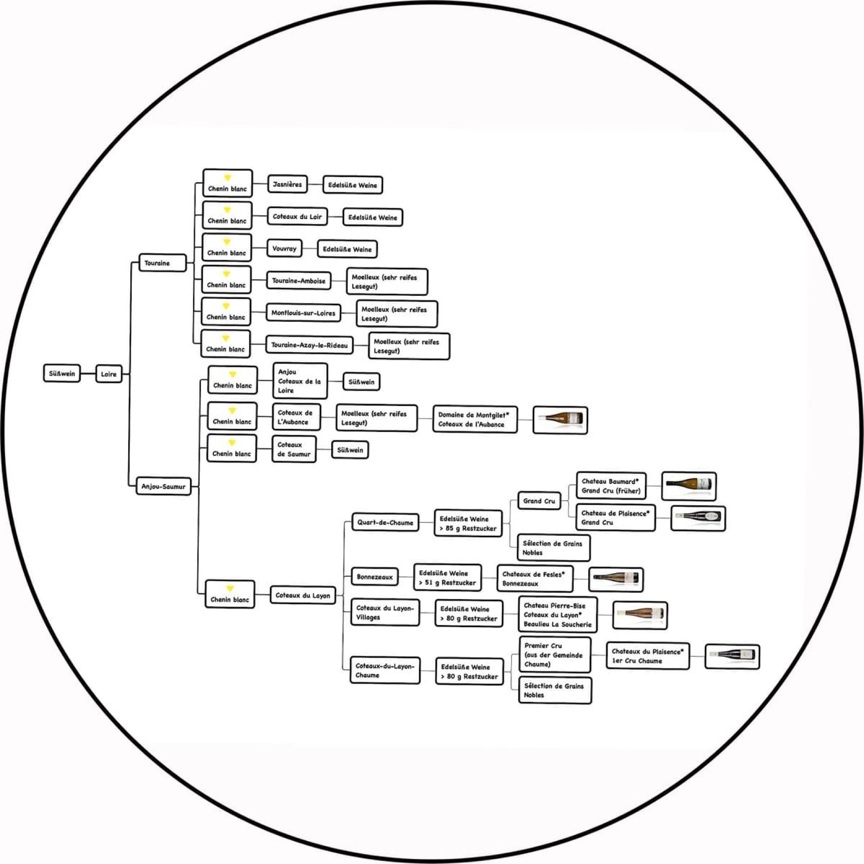 Weine durch natürliche Konzentration: Auslese, Beerenauslese, Trockenbeerenauslese, Eiswein.